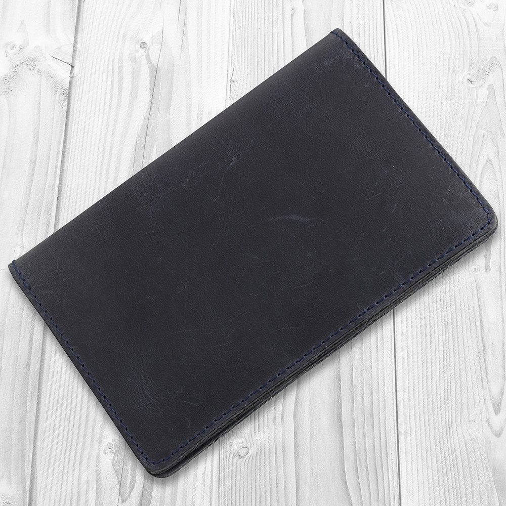 Синя шкіряна обкладинка-органайзер з відділом для ID документів